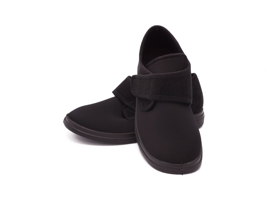 Diabetická obuv nízká černá suchý zip, materiál textil s elastanem je poddajný i pro silné nohy. Velmi příjemná a lehká obuv, není odolná proti vodě. Vložka obuvi lze vyjmout.