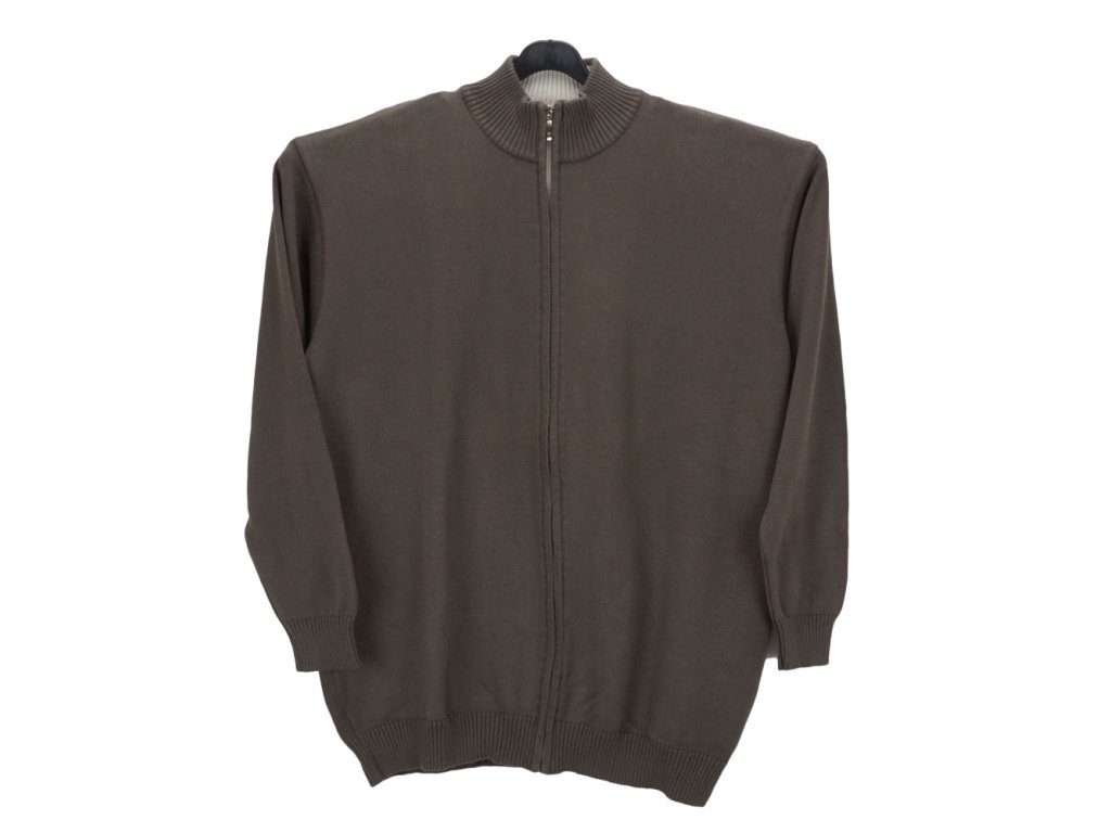 Sportovní pánský svetr v barvě lískového oříšku Vám bude slušet k riflím i kalhotám na volný čas. Stojáček s krémově světlou vnitřní stranou je velmi efektní ke košili, ovšem i tričko s límečkem získá kouzlo s tímto skvělým svetrem. Rozepnutý zip umožní velmi pohodlné oblékání a zachová elegantní vzhled. Materiál 50% bavlna a 50% akryl je zárukou kvality, snadné údržby a praní .