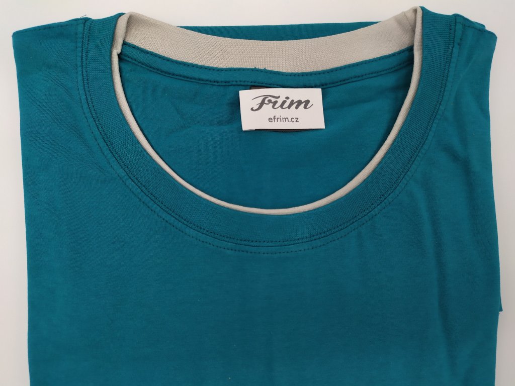 Pánské nadměrné tričko petrolejové barvy s lemem u kulatého výstřihu v šedé barvě a také lemování na koncích krátkých rukávů. Materiál 100% bavlna.
